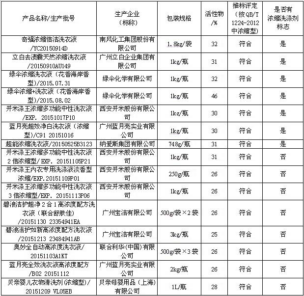 本次质量检测中符合行业标准、质量较好的浓缩洗衣液产品如下: