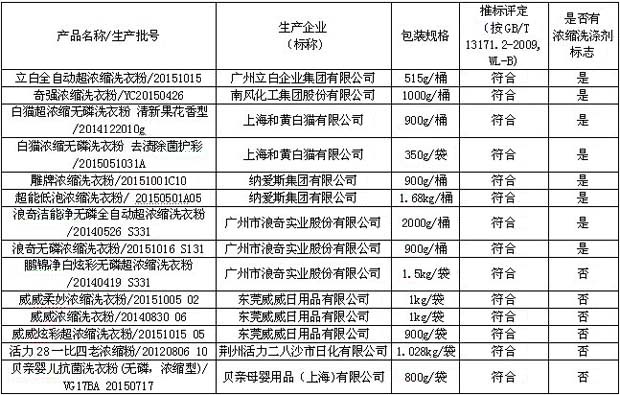本次质量检测中符合国家标准、综合洗涤效果较好的浓缩洗衣粉产品如下: