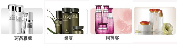 高丽雅娜的主打产品:珂芮雅娜、绿豆、珂芮姿、新芙兰丝汀。