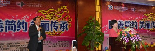 11月30日的晚宴在协会会长张义强先生,《中国美妆》董事长桂绍元先生,《化妆品报》执行总编李惠华女士,中国美容博览会组委会桑敬民主席的致辞后正式开始。会上,张义强会长对协会成立6年来的工作做了回顾,对化妆品行业的现状进行分析,并分别给2家新加入协会的企业“广东鸿业玻璃制品有限公司”和“广东乐尔康生物科技股份有限公司”代表颁发副会长、理事单位牌匾。