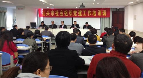 2013年12月25日,由汕头市民政局、汕头市社会组织管理局、汕头市社会组织党委主办的汕头市社会组织党建工作培训班在市经济管理干部学校举办。来自市级17个社会组织党组织及市级社会组织协会近100名工作者参加此次培训。市委组织部副部长林俊扬、市民政局副局长洪瑞沣、市社会组织管理局局长许彦恭、市局领导赖辉太、李旭东等人出席现场,并做了开班动员。
