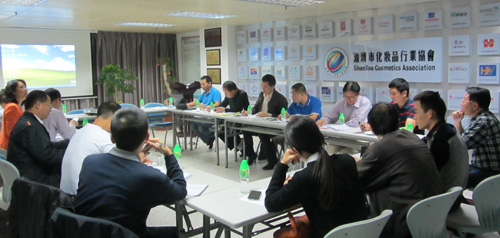 针对此事,我汕头市化妆品行业协会组织了协会专家库成员、会员企业代表等共21人于2014年11月17日在协会会议厅举行了一个研讨会,对2个法规进行深入探讨。此次会议由协会副秘书长广东名臣有限公司洪胜保先生主持。洪胜保先生是广东日化商会法规专业委员会执行主任、广东名臣有限公司体系管理部总监,曾参与国家部分法规条例的修订,是一名资料的法规专业顾问。会上,洪胜保先生逐条对法规条文进行解读,并与与会人员进行深入交流并交换了意见。与会人员在会后形成统一意见,企业代表在本周五前将自家企业的反馈意见稿提交给国家局的同时发一份给协会,协会将会将各位专家和企业代表的意见汇总后再向国家食品药品监督管理总局提出反馈意见。