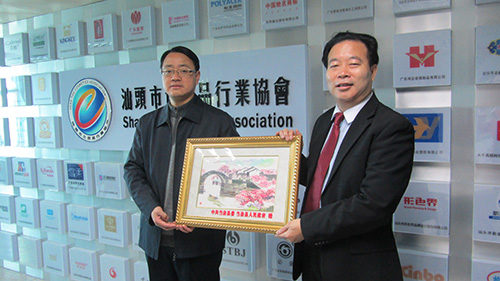 2014年12月16日,马鞍山市当涂县委书记杨善斌、当涂县委常委、当涂经济开发区主任滕青一行5人至汕头参观考察化妆品行业。我汕头市化妆品行业协会会长张义强和秘书长范莉在协会热情接待了杨书记一行。张会长和范秘书长向杨书记详细介绍了协会的现状跟协会优秀的会员企业,杨书记对协会的工作进行了充分的肯定,认为日化行业是一个朝阳产业,并向协会赠送了当涂县委当涂县人民政府的友好纪念品。随后张会长与范秘书长陪同杨书记一行参观了协会副会长单位广东三椒日化有限公司和广东雅丽洁精细化工有限公司。