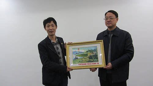 杨书记向广东三椒林创友副会长赠送当涂县委当涂县人民政府纪念品