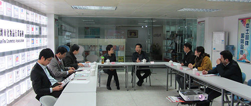 2015年02月07日,马鞍山市政协主席李群一行6人至汕头参观考察化妆品行业。我汕头市化妆品行业协会会长张义强和秘书长范莉在协会热情接待了李主席一行。张会长和范秘书长向李主席详细介绍了协会的现状跟协会优秀的会员企业,李主席对协会的工作进行了充分的肯定,认为日化行业是一个朝阳产业,并邀请协会再次组织会员企业至马鞍山市参观考察。随后李主席一行参观了协会副会长单位广东仙乐制药有限公司。