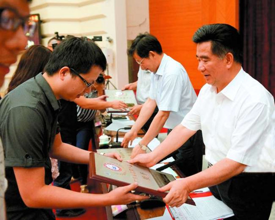与会领导为获得2014年度广东省名牌产品(工业类)的企业代表授牌
