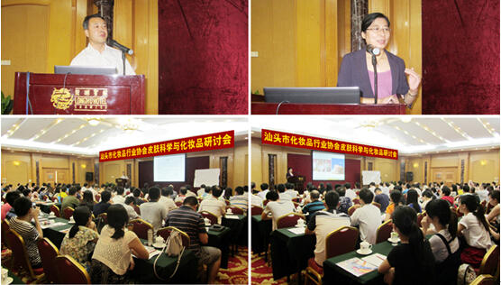 由汕头市化妆品行业协会主办,汕头市新博化工有限公司和汕头大学医学院联合协办的“皮肤科学与化妆品研讨会”于2015年8月8日上午在汕头市龙湖宾馆三楼会议中心隆重召开,协会会员企业积极响应,共有100人参加了此次研讨会。